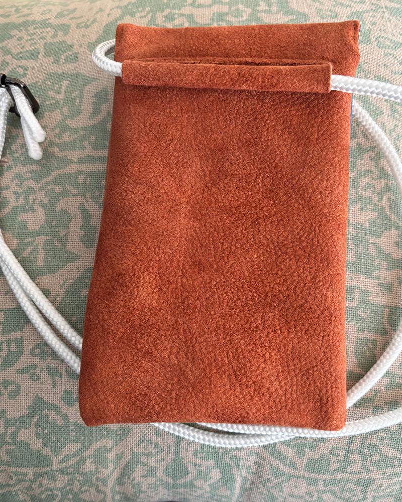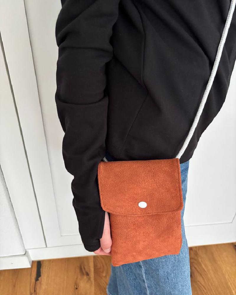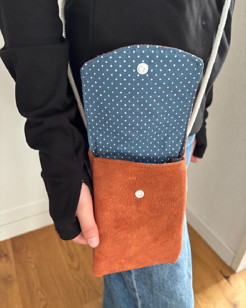 Die Handytasche Puntini ist ein praktischer und stilvoller Begleiter für unterwegs. Der Aussenstoff besteht aus einem hochwertigen Lederimitat aus recyceltem Leder-Microfaser-Mix. Innen sorgt ein gepunkteter Baumwollstoff für einen schönen Kontrast.