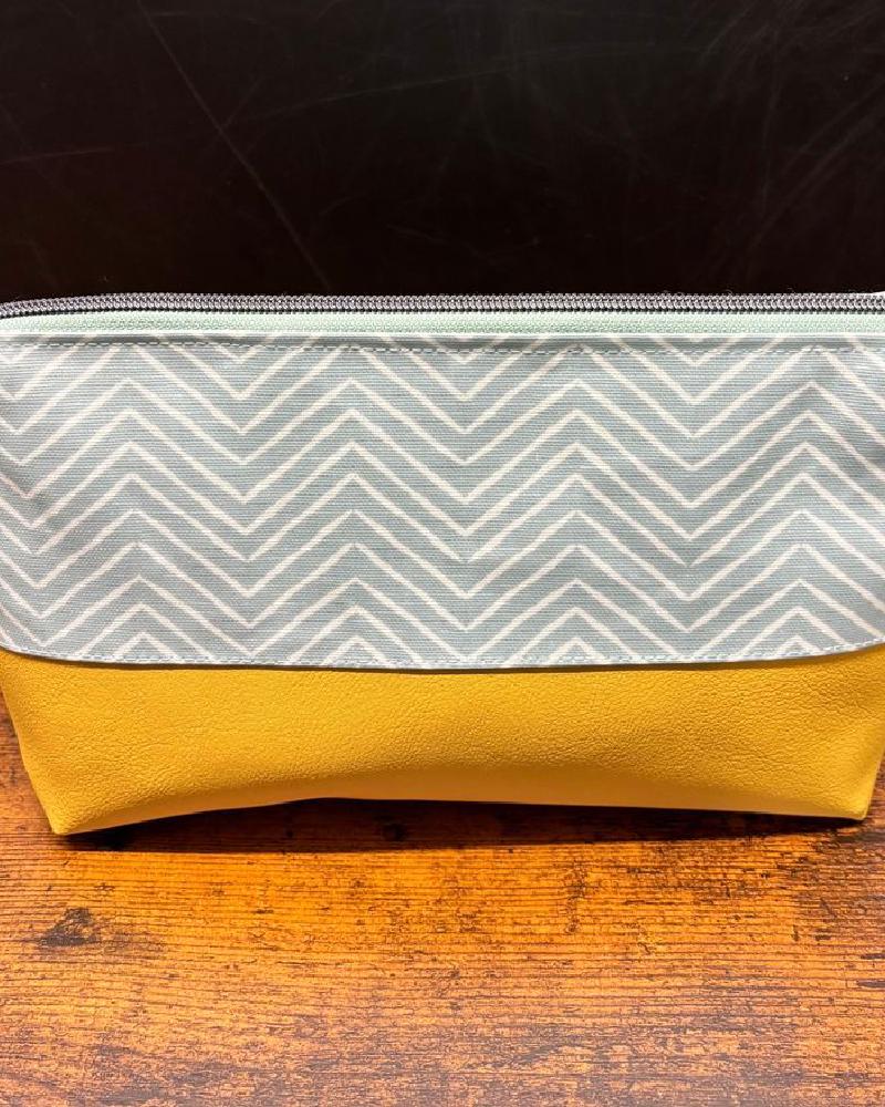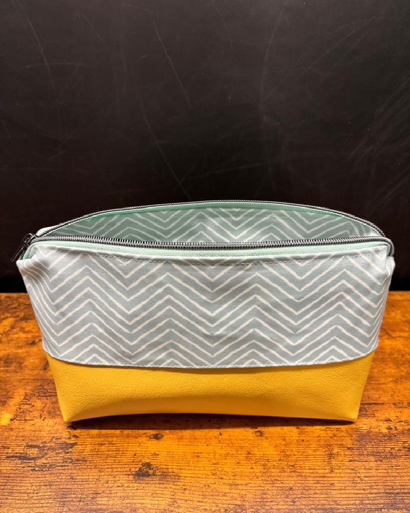 Das Necessaire Primavera überzeugt durch eine harmonische Farbkombination und hochwertige Materialien. Gefertigt aus robustem, hochwertigem Kunstleder in Curry und einem strapazierfähigen, beschichteten Baumwollstoff in blau-weißem Muster, ist es sowohl langlebig als auch pflegeleicht. Der mintfarbene Reißverschluss setzt einen frischen Akzent und ist mit anthrazitfarbenem Metallreißverschluss samt Zähnen in Anthrazit ausgestattet – stabil, edel und funktional. Ideal für Kosmetik, Reiseutensilien oder den täglichen Gebrauch.